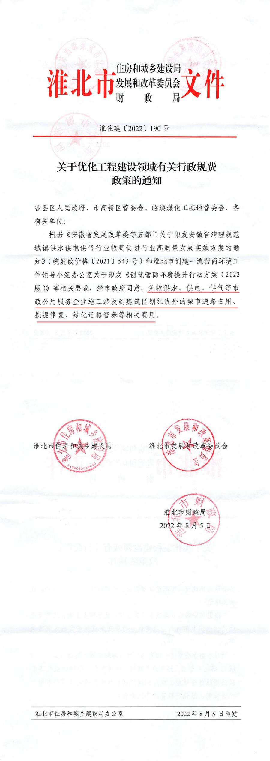 關(guān)于優(yōu)化工程建設(shè)領(lǐng)域有關(guān)行政規(guī)費政策的通知 淮住建【2022】190號