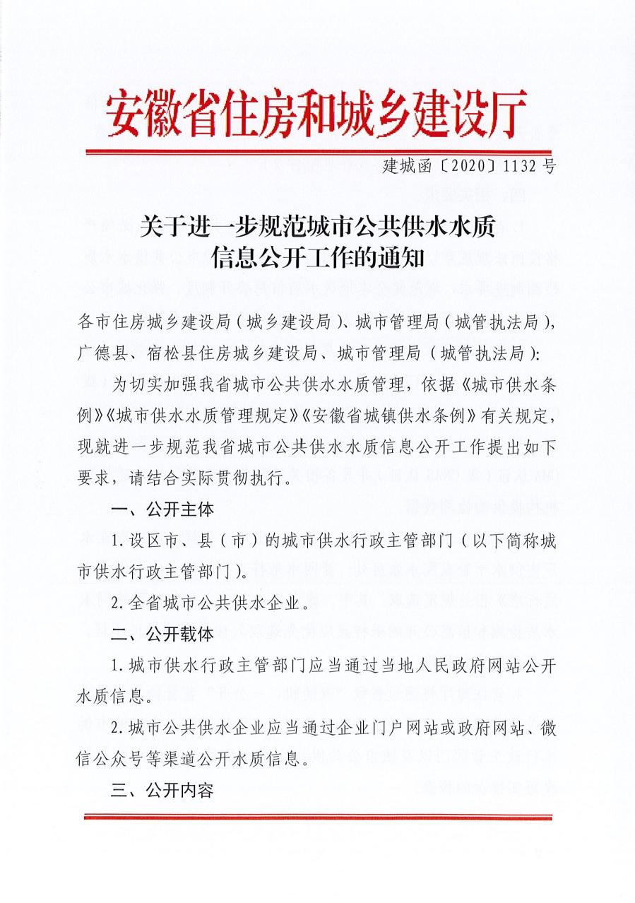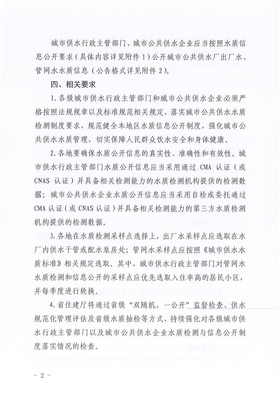 關于進一步規(guī)范城市公共供水水質信息公開工作的通知