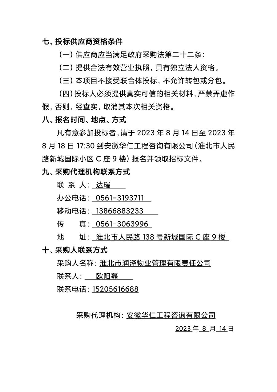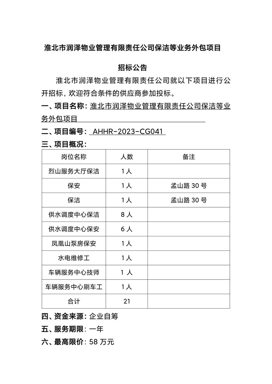 淮北市潤澤物業(yè)管理有限責(zé)任公司保潔等業(yè)務(wù)外包項目招標(biāo)公告
