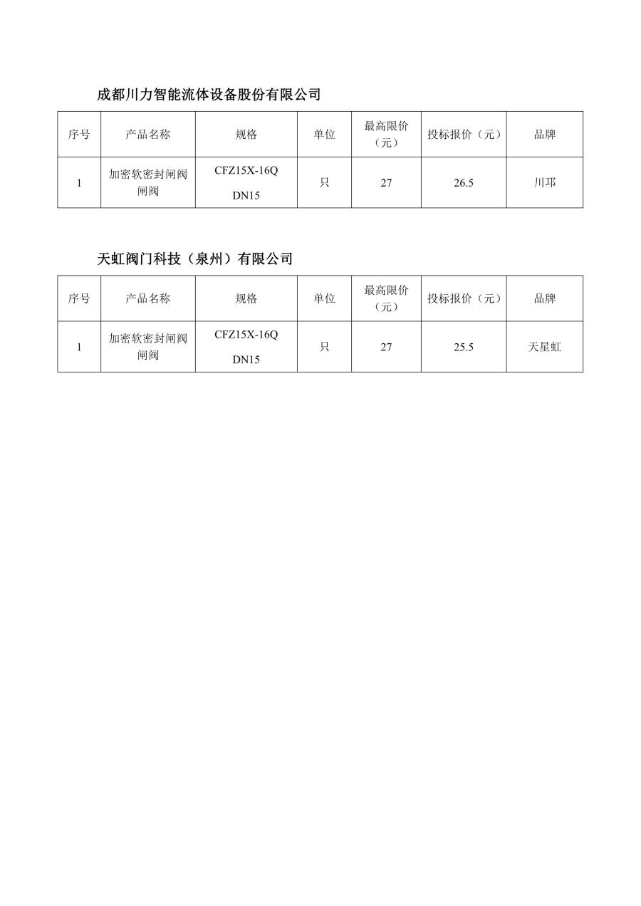 中標(biāo)公示:淮北市供水有限責(zé)任公司2023年度DN15磁性防盜軟密封閘閥采購項(xiàng)目