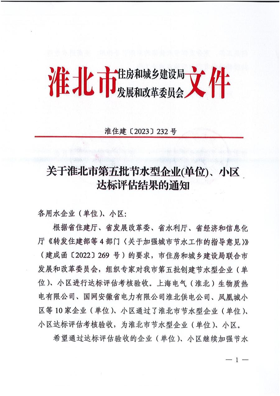 10月23日,接市住房和城鄉(xiāng)建設(shè)局、市發(fā)改委通知,供水公司通過淮北市第五批節(jié)水型企業(yè)達標評估考核驗收,被評為:淮北市節(jié)水型企業(yè)(單位)。