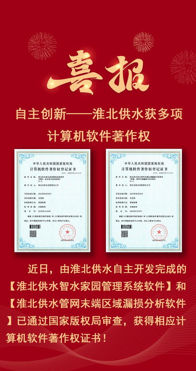 自主創(chuàng)新——淮北供水獲多項(xiàng)計(jì)算機(jī)軟件著作權(quán)