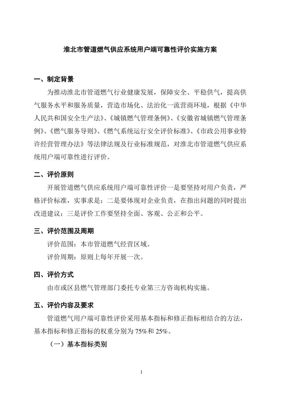 關(guān)于印發(fā)《淮北市供水供氣系統(tǒng)用戶端可靠性評(píng)價(jià)實(shí)施方案》的通知