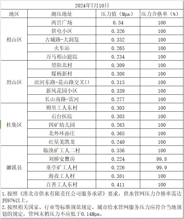 2024年7月10日水壓抽測公示