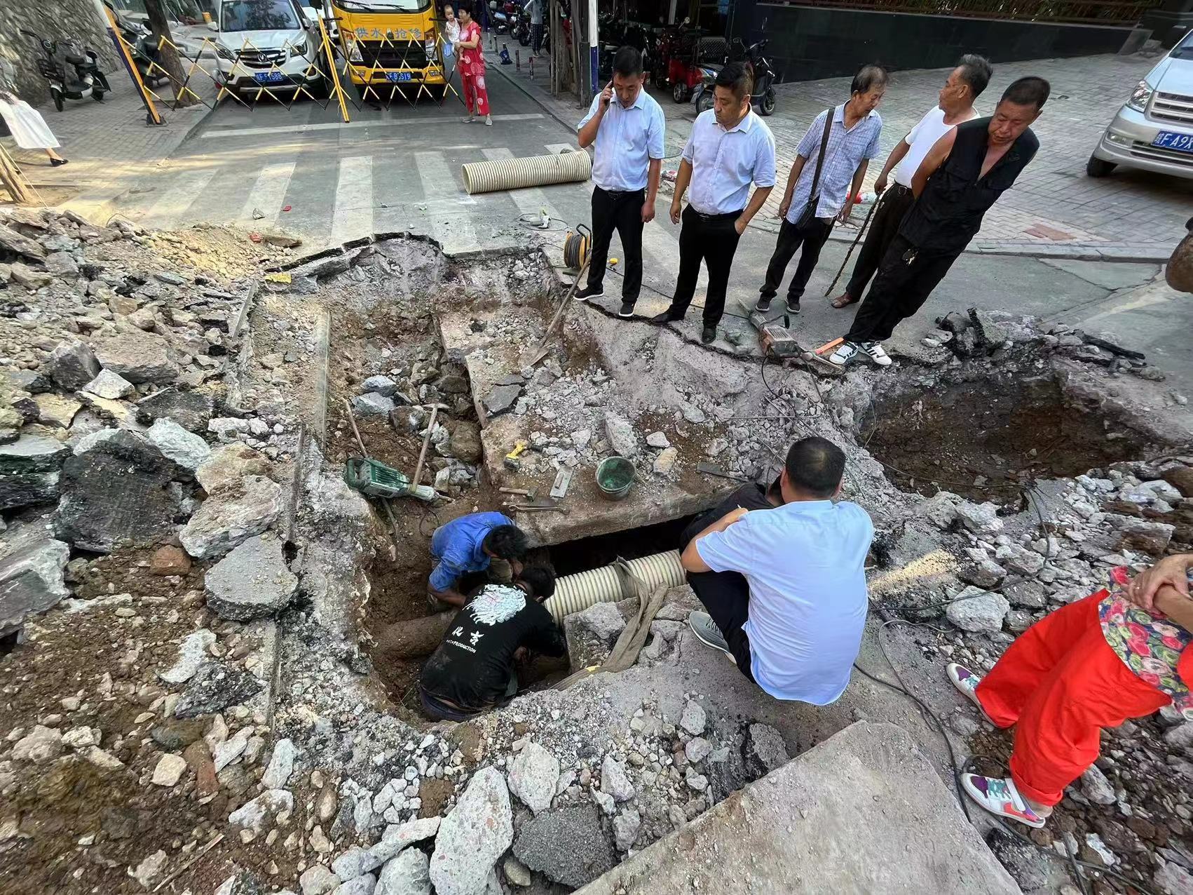管網(wǎng)部立即對(duì)漏水點(diǎn)展開了搶修工作,漏水點(diǎn)在環(huán)山西路中間位置。為了過往車輛和施工人員的安全,立即匯報(bào)至交警部門,得到批準(zhǔn)后對(duì)環(huán)山西路進(jìn)行了封路。搶修工人頂著高溫天氣,經(jīng)過8個(gè)小時(shí)的奮戰(zhàn),終于將漏水管道修復(fù)完成,確保了居民正常用水。晚上21時(shí),清運(yùn)多余的余土和開挖溝槽的回填,恢復(fù)環(huán)孟西路正常通行。8月18日凌晨1時(shí),瀝清路面恢復(fù)完畢,開始清掃、沖刷開挖處路面的污垢。直至凌晨3時(shí),搶修工作全部完成。