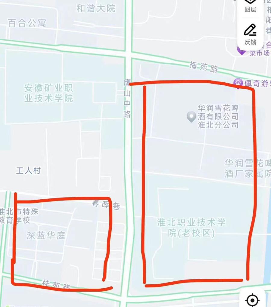 計劃影響范圍:影響深藍華庭,淮北市職業(yè)技術學院(老校區(qū)),雪花啤酒廠