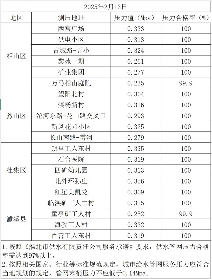 2025年2月13日水壓抽測(cè)公示