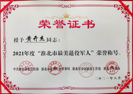 8月13日,從淮北市委宣傳部、淮北市退役軍人事務(wù)局等部門獲悉,供水公司職工黃開杰榮獲2021年度“淮北市最美退役軍人”榮譽稱號。